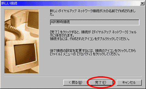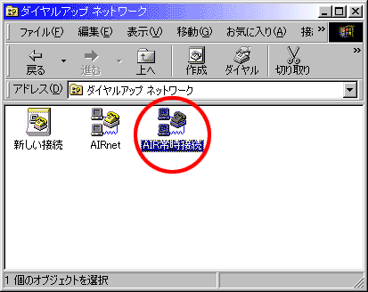 「パスワード(P):」は、AIRnetで現在使用しているPPPパスワードを入力してください。最後に「接続」ボタンを押して接続します。