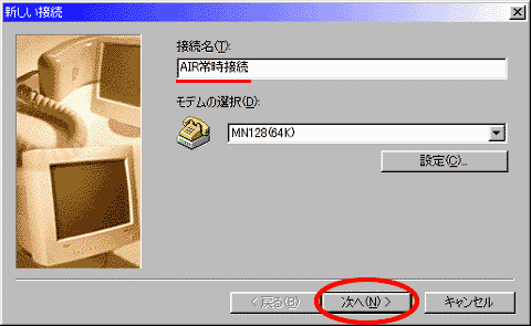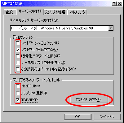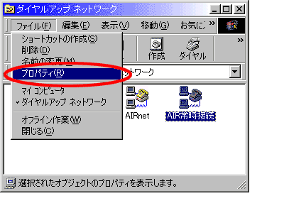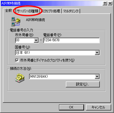 「ユーザ名(U):」に、PPPアカウント@airnet.ne.jp の形式で入力します。