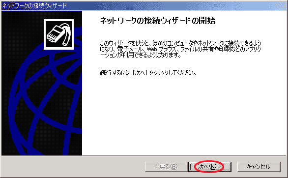 - ネットワークの接続ウィザードが起動します。