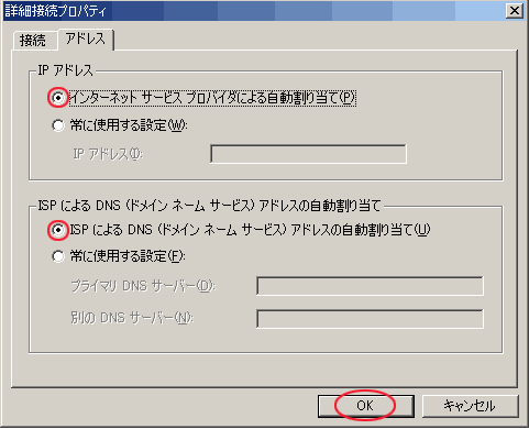 「IPアドレスを自動的に取得する(O)」を選択。