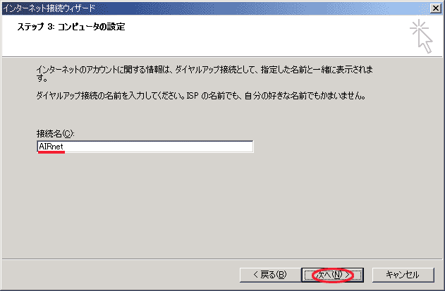 「接続名(C)」に AIRnetと入力します。