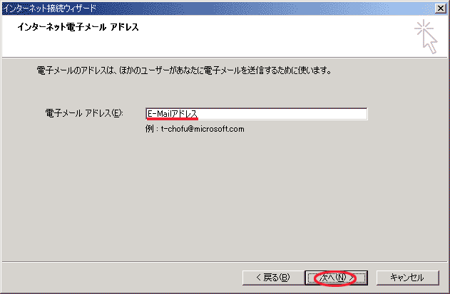 他のメールソフトを利用される方や、Outlook Expressをセットアップ済みの方(Windows2000を上書きでインストールされた方など)は「いいえ(O)」を選択し「次へ(N)」を押します。 →こちらへ