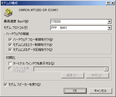 「構成(O)」を押すと、モデムの詳細が設定(確認)できます。→例
