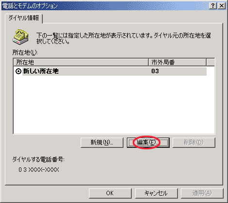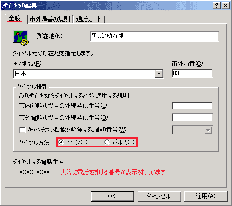 「市外局番(C)」に、発信元(あなた)の市外局番を入力します。