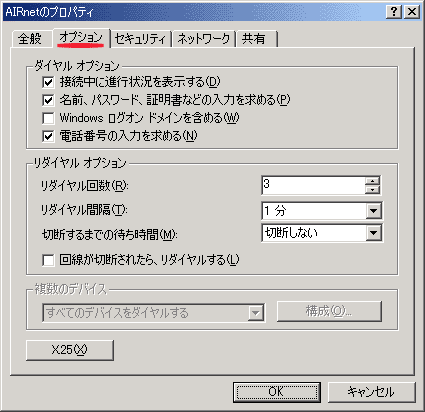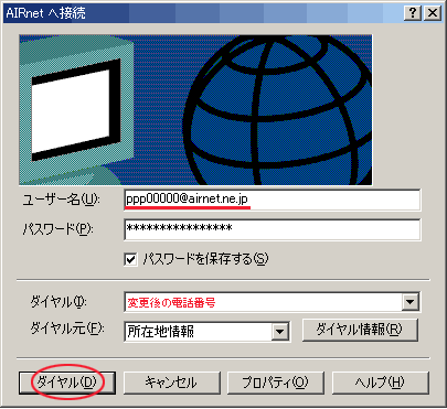 「ダイアル(D)」を押し、AIRnetに接続します。