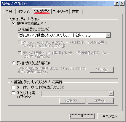 セキュリティオプションは「標準(推奨設定)(T)」を選択。