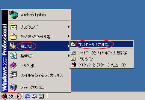 - 「スタート」→「設定」→「コントロールパネル」と選択して、コントロールパネルを表示します。