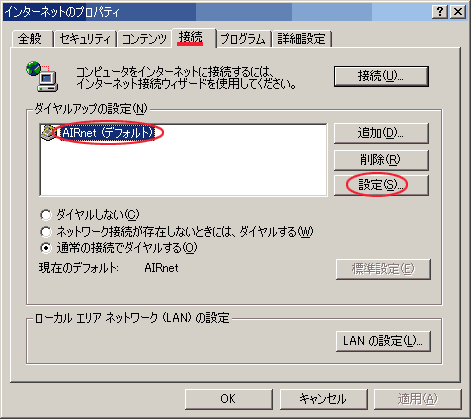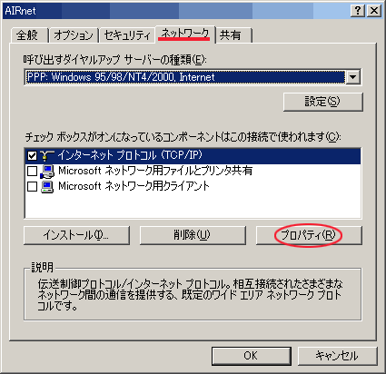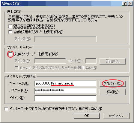 「ユーザ名(U)」にPPPアカウント@airnet.ne.jpが表示されていることを確認。